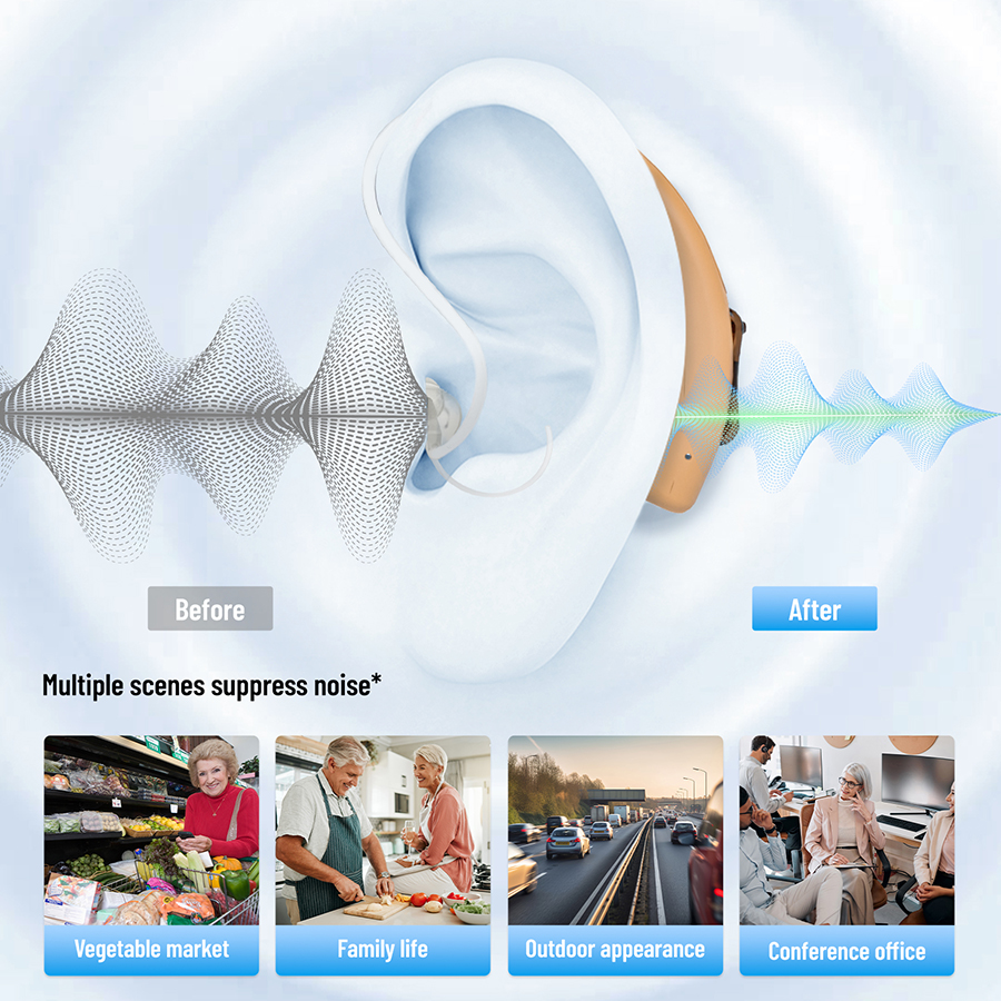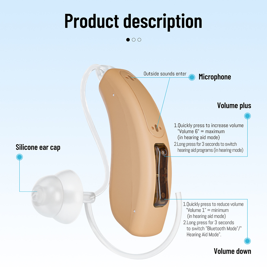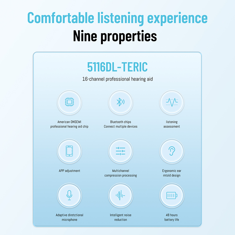 This hearing aid is a digital 16 channel, EQ32 channel RIC style, suitable for people with moderate to severe hearing loss.