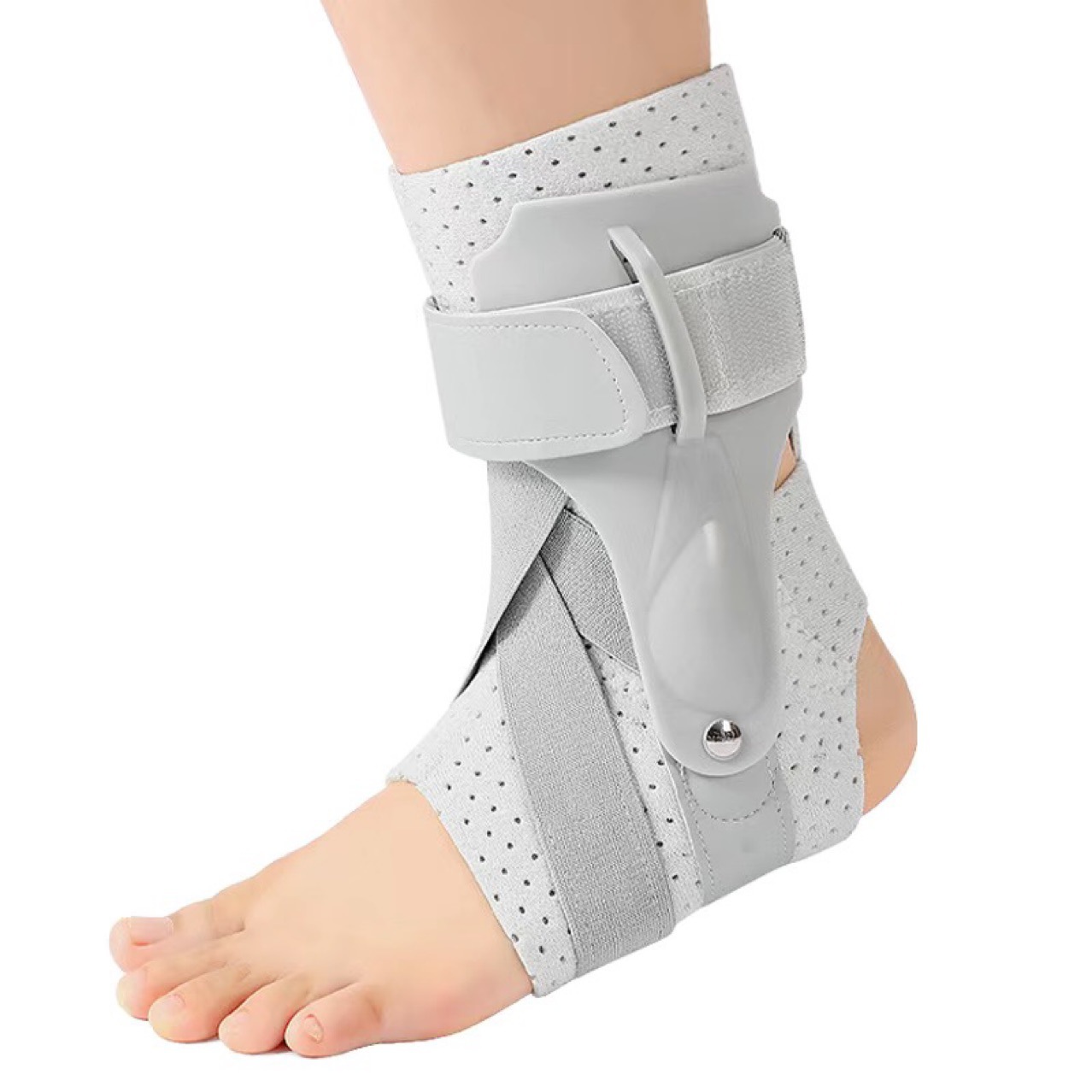 Indications: Immobilization for ankle joint injuries,ligament fixation following achilles tendon rupure. Features: 1.Skin-friendly breathable material ensures comfortable wear without overheating. 2.Adjustable size, secure fixation,effortless adjustment. 3.Supporting protective plates on both sides, stable ankle joint. 4.Free movement,double lined soft cushion.