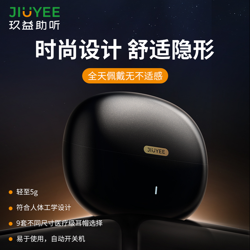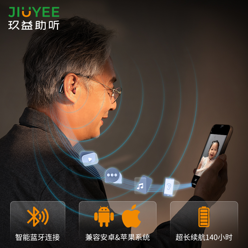 JIUYEE Medical-Grade Smart Bluetooth Behind-the-Ear Hearing Aid (RIC P4 High Power) Designed for moderately severe to partial profound hearing loss. Powered by JIUYEE’s original “Tri-Core System Technology”, it offers 75 dB full-scale gain, a 135 dB maximum sound pressure level, 64-channel WDRC with AI noise reduction technology, and supports at-home hearing test and fitting in just 5–8 minutes. With IP67 water resistance and 140 hours of long battery life, it ensures clear, comfortable communication in everyday life.