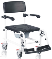 1.KD快拆車架主體結(jié)構(gòu); 2.后掀PU扶手墊、PU座板、PU座板蓋、PU背墊; 3.配4個5寸帶剎靜音輪組,鋁插桿五金件達(dá)克羅防銹處理; 4.標(biāo)配含腳跟帶,圓形馬桶