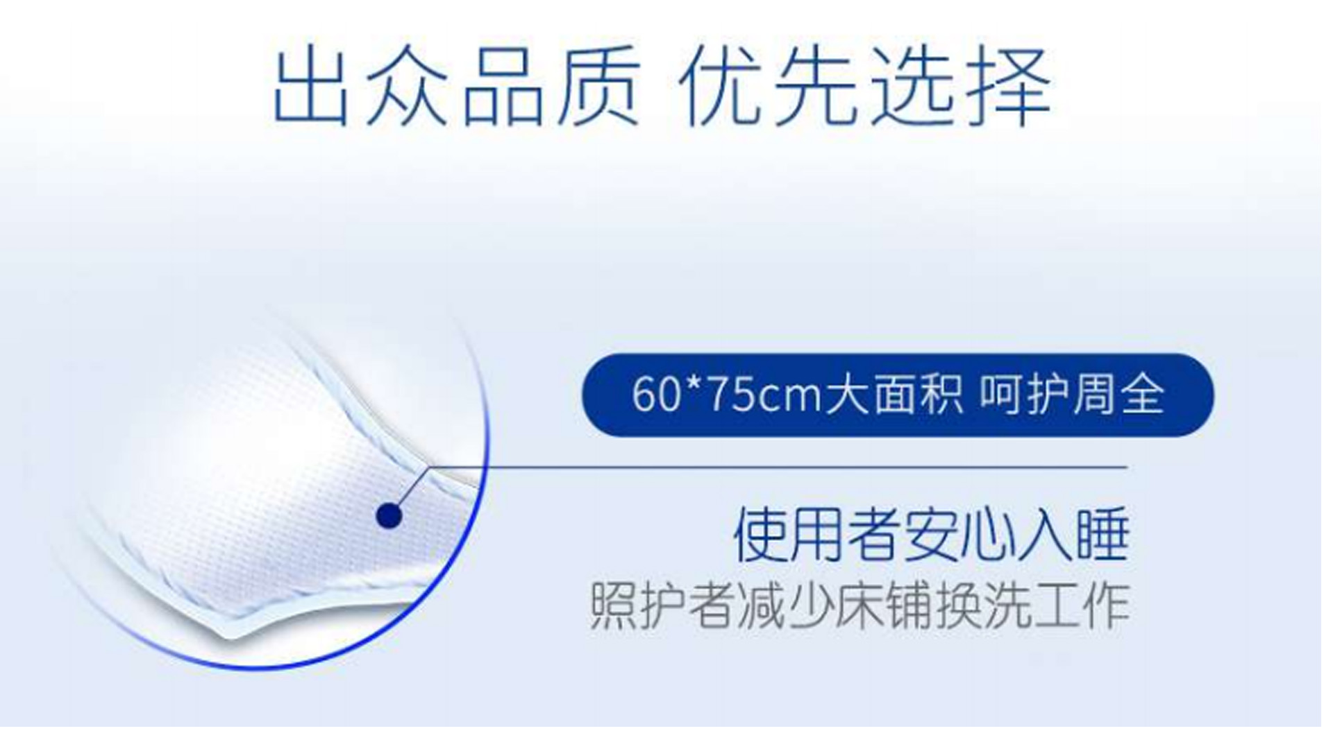 柔軟表層 采用柔軟親水無紡布,觸感舒適,滲透性強(qiáng),干爽性好 高速擴(kuò)散壓紋 網(wǎng)狀菱形壓紋導(dǎo)流設(shè)計(jì),液體擴(kuò)散迅速,維持表層干爽。 高分子 有效防止?jié)B漏,減少床單,被褥污濁的換洗次數(shù)。 防漏PE底膜 有效防止?jié)B漏,減少床單,被褥污濁的換洗次數(shù)。