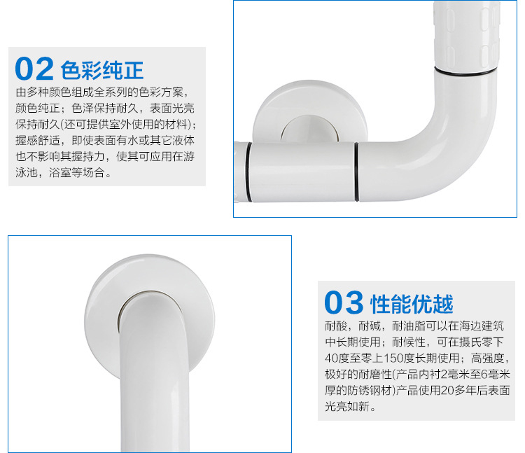 采用4mm厚度的高品質(zhì)德國(guó)尼龍材料,內(nèi)襯采用304不銹鋼管或優(yōu)質(zhì)鋁合金組成;有抗菌、防火、耐磨、耐酸、耐堿、耐油脂及防滑等性能;表面有防滑浮點(diǎn),產(chǎn)品是能達(dá)到食品級(jí)的環(huán)保材料;有抗沖擊型,產(chǎn)品表面撞擊后不會(huì)像金屬管材產(chǎn)生凹痕,不會(huì)有任何傷痕;有耐溫性,可以在攝氏零下四十度到零上五十度中長(zhǎng)期使用,可為客戶提供配色服務(wù),色彩多樣,整潔美觀,使墻面充滿活力,保養(yǎng)方便、持久耐用。