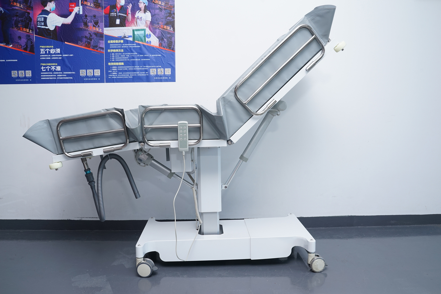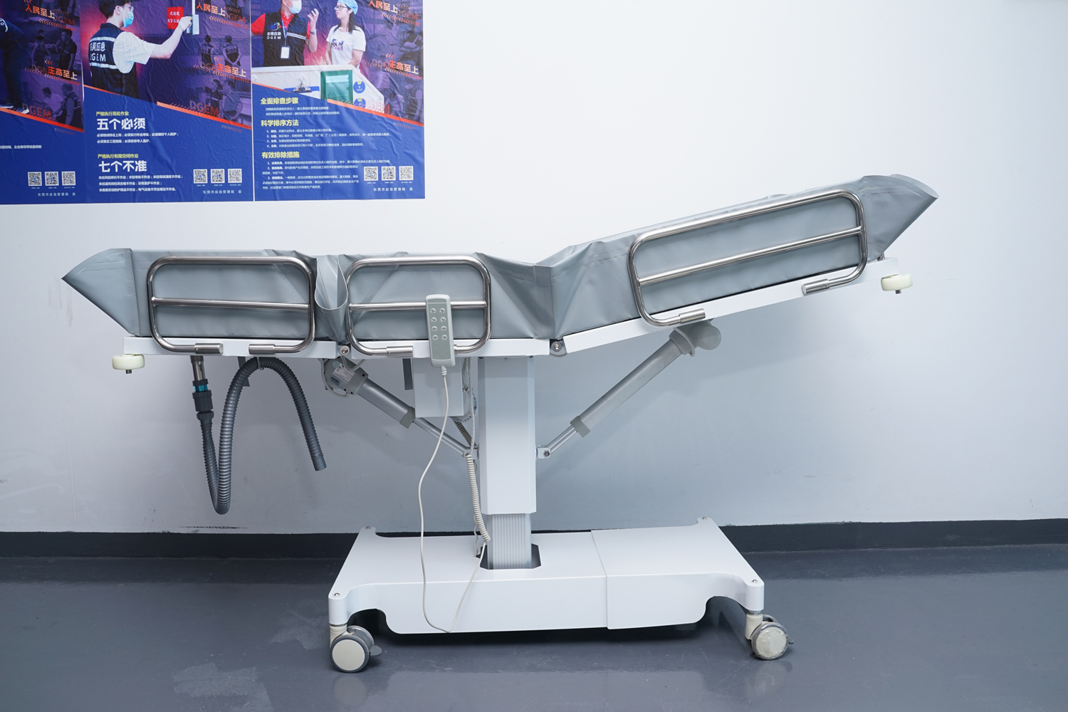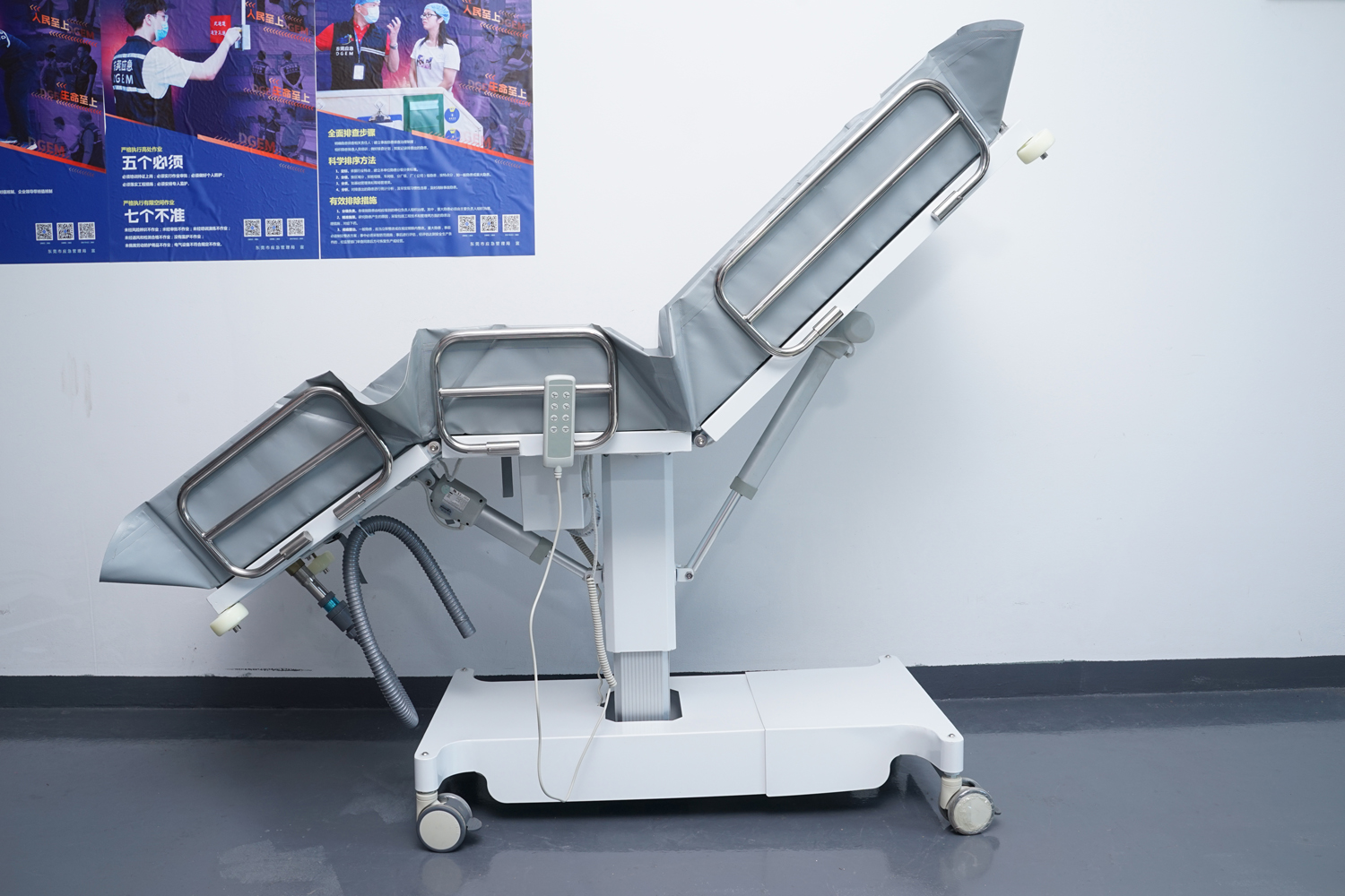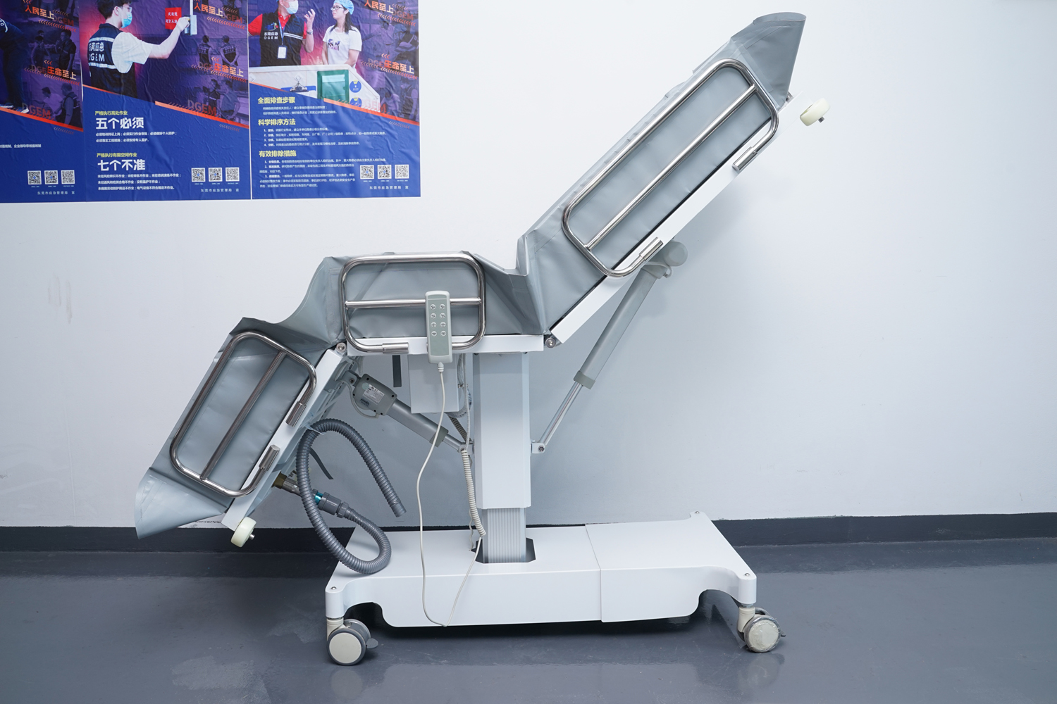 床體電動三折折疊,電動整體獨立升降調(diào)節(jié),靠背、腿部各自獨立電動調(diào)節(jié) 可攤開可收縮折疊行走,便于狹小走廊行走及狹小空間洗浴等 電機功率3*6000-8000N,全部鋰電池24V安全電壓供電,防護等級:IP54。 配備舒適安全帶,保護在洗浴及轉(zhuǎn)運是浴者安全。 靠背、腿部可根據(jù)浴者舒適度隨意0°--80°調(diào)節(jié)。 護工操作簡單,調(diào)節(jié)到浴者舒適體位。 框 架:冷板、冷管;