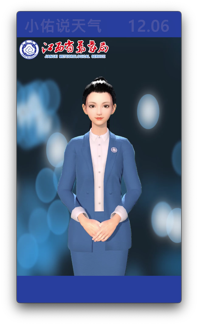 江西氣象AI手語全媒體服務(wù)于2022年8月上線,氣象AI手語虛擬主播“江小佑”在江西衛(wèi)視天氣預(yù)報節(jié)目正式“上崗”,同時還在快手、微博等平臺開辟了專屬欄目《小佑說天氣》,通過手語為聽障朋友解說天氣,提供無障礙均等化享受及時、準確、貼心的氣象服務(wù)。