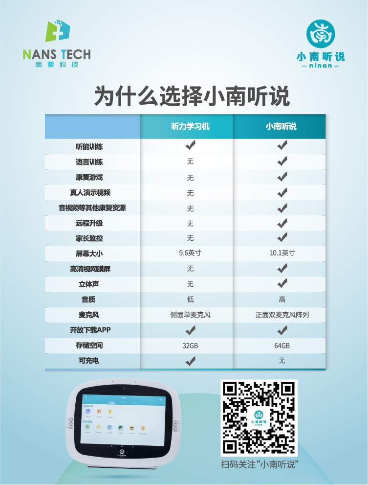 小南聽說聽力語言智能康復(fù)助手是一款基于人工智能和數(shù)字康復(fù)技術(shù)的語言康復(fù)產(chǎn)品,主要面向各類語言、認(rèn)知及聽力障礙的兒童,由一套智能訓(xùn)練系統(tǒng)和一套智能硬件設(shè)備組成,目前主要有專業(yè)版和智享版兩種硬件形態(tài),可實(shí)現(xiàn)智能化的家庭/機(jī)構(gòu)全方位康復(fù)訓(xùn)練。該產(chǎn)品在上市后獲得數(shù)千萬家長(zhǎng)認(rèn)可,現(xiàn)誠(chéng)邀各地經(jīng)銷商垂詢合作。