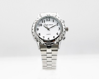 .材質:1)表殼采用不銹鋼 ;2)表帶采用鋼制;3)表蓋采用石英玻璃。 功能:1)具有語音報時功能,可播報當前時間;2)具有整點報時功能;3)具有鬧鈴及貪睡功能。 適用于 一/二級盲和全盲人群。