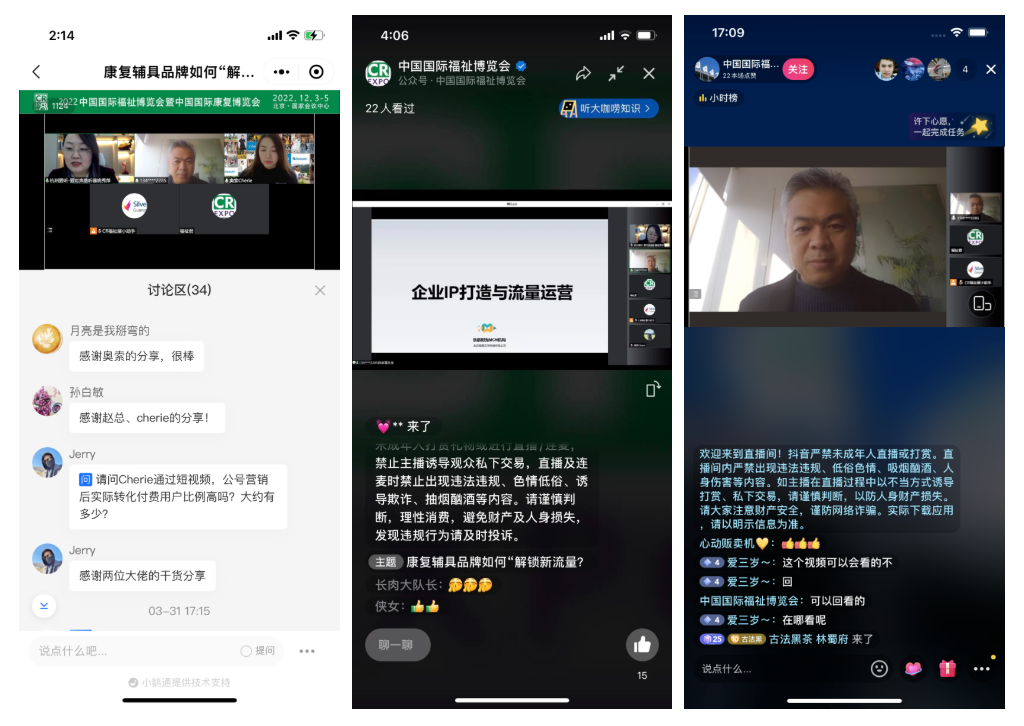 為了解答康復輔具品牌在線上營銷的問題,探討符合行業(yè)特性的新思路新玩法,中國國際福祉博覽會組委會于3月31日開展CR云講堂直播,邀請奧索中國市場部經(jīng)理李迪琛、北京海星文華科技有限公司總經(jīng)理趙海國作為演講嘉賓,杭州愛聽科技-愛可聲助聽器總經(jīng)理姚秀萍作為直播主持人,圍繞康復輔具品牌如何“解鎖”新流量展開分享。