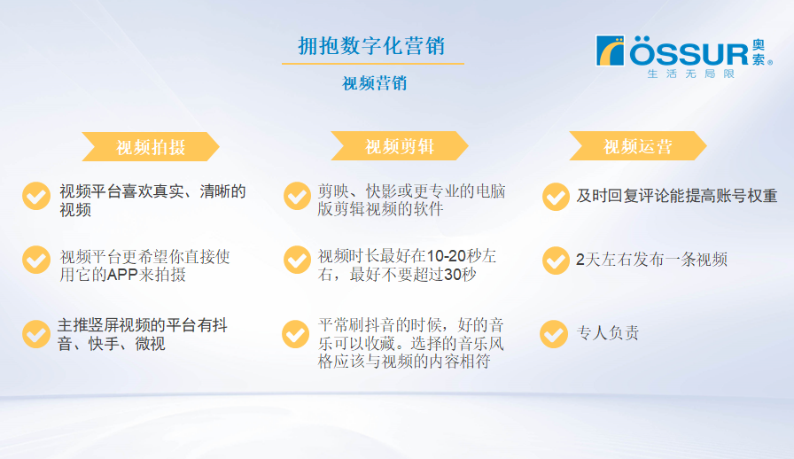 與傳統(tǒng)營銷相比,數(shù)字化營銷有營銷成本低、互動性高、精準化程度高的優(yōu)點。奧索通過短視頻平臺(抖音、快手)進行數(shù)字化營銷,取得了不錯的成果。