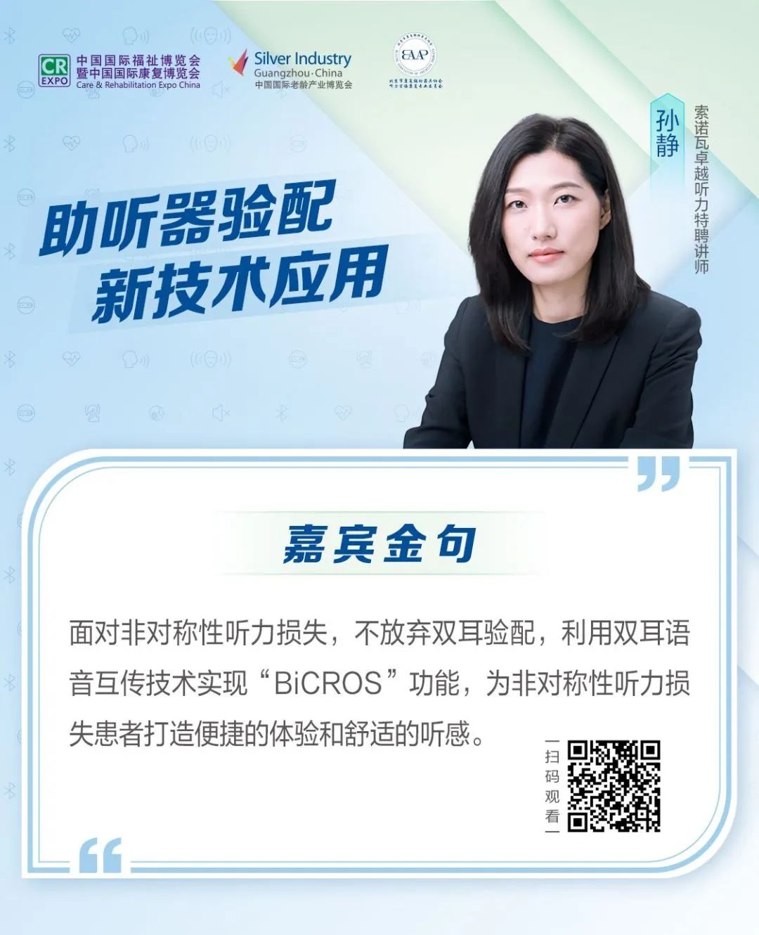 伴隨社會對于聽力殘障人士的包容和關(guān)注的提升,助聽器配驗技術(shù)迅速發(fā)展。2022年5月31日,中國國際福祉博覽會(CR EXPO)聯(lián)合北京市康復輔具協(xié)會聽力言語康復專業(yè)委員會共同舉辦以“助聽器驗配新技術(shù)應用”為主題的線上交流會。