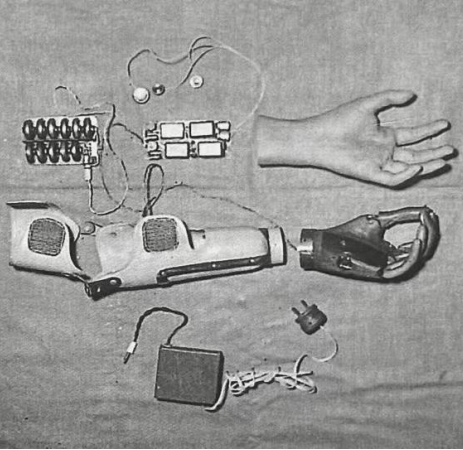 人手是一個(gè)復(fù)雜又高級(jí)的運(yùn)動(dòng)部位,而假手除對(duì)功能、外形、重量、噪聲、能耗等有著苛刻要求之外,更要能夠滿足日常各種條件下的使用需求,這在一定程度上加大了上肢假肢的研發(fā)難度。因此,即使是在上世紀(jì)六十年代的發(fā)達(dá)國(guó)家,有關(guān)肌電控制假肢的研究也仍處于起步階段。