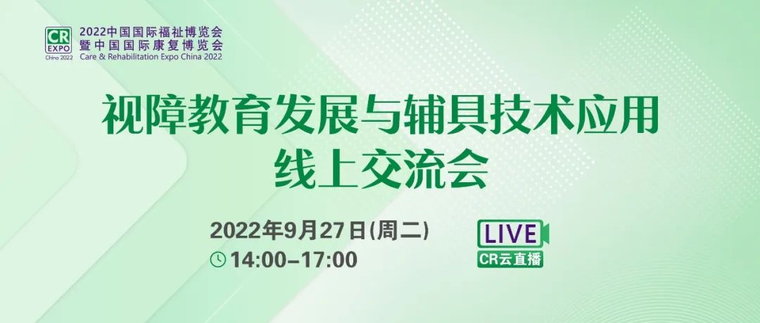 中國國際福祉博覽會暨中國國際康復博覽會組委會聯(lián)合中國盲文出版社,將于9月27日舉辦“視障教育發(fā)展與輔具技術(shù)應用線上交流會”,邀請視障教育康復領域科研單位、院校、企業(yè)等專家代表主題分享,搭建視障教育康復領域產(chǎn)學研交流合作平臺,推動科技輔具技術(shù)在特教康復領域的推廣與應用,為特殊教育康復事業(yè)和產(chǎn)業(yè)發(fā)展發(fā)揮引領和帶動作用。
