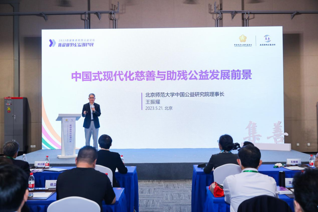 主旨演講環(huán)節(jié),北京師范大學(xué)中國公益研究院理事長王振耀以《中國式現(xiàn)代化慈善與助殘公益發(fā)展前景》為題進行主旨演講,他指出,中國的公益事業(yè)正處于快速發(fā)展的階段,推動和實現(xiàn)助殘公益現(xiàn)代化需要政府、社會組織、企業(yè)等多方的共同努力。只有通過各方面的支持和合作,才能夠?qū)崿F(xiàn)助殘公益事業(yè)的現(xiàn)代化和可持續(xù)發(fā)展。