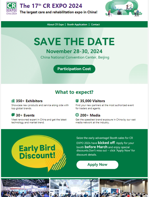 目前CR福祉博覽會(huì)在海外推廣上全力出擊,通過海外社媒、線上精準(zhǔn)營(yíng)銷、EDM營(yíng)銷、海外展會(huì)等多渠道推廣,將更多國(guó)際買家“引進(jìn)來”,推動(dòng)更多展商“走出去”!