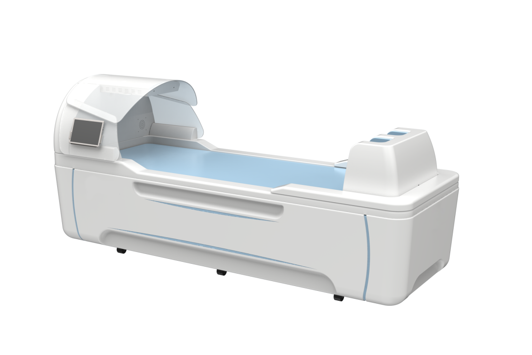 水療按摩床利用機(jī)械傳動(dòng)帶動(dòng)按摩噴頭進(jìn)行各種形式的擺動(dòng),利用電動(dòng)球閥控制按摩噴頭的開(kāi)啟數(shù)目,利用高壓水泵提供動(dòng)力,使不同溫度、不同壓力的水從按摩噴頭噴出,沖擊硅膠床面,從而對(duì)人體進(jìn)行按摩和溫度刺激,同時(shí)還配備有氣壓式腳部按摩,音樂(lè)播放、藍(lán)牙連接、空氣凈化、芳香、美容、氛圍燈等多種功能。