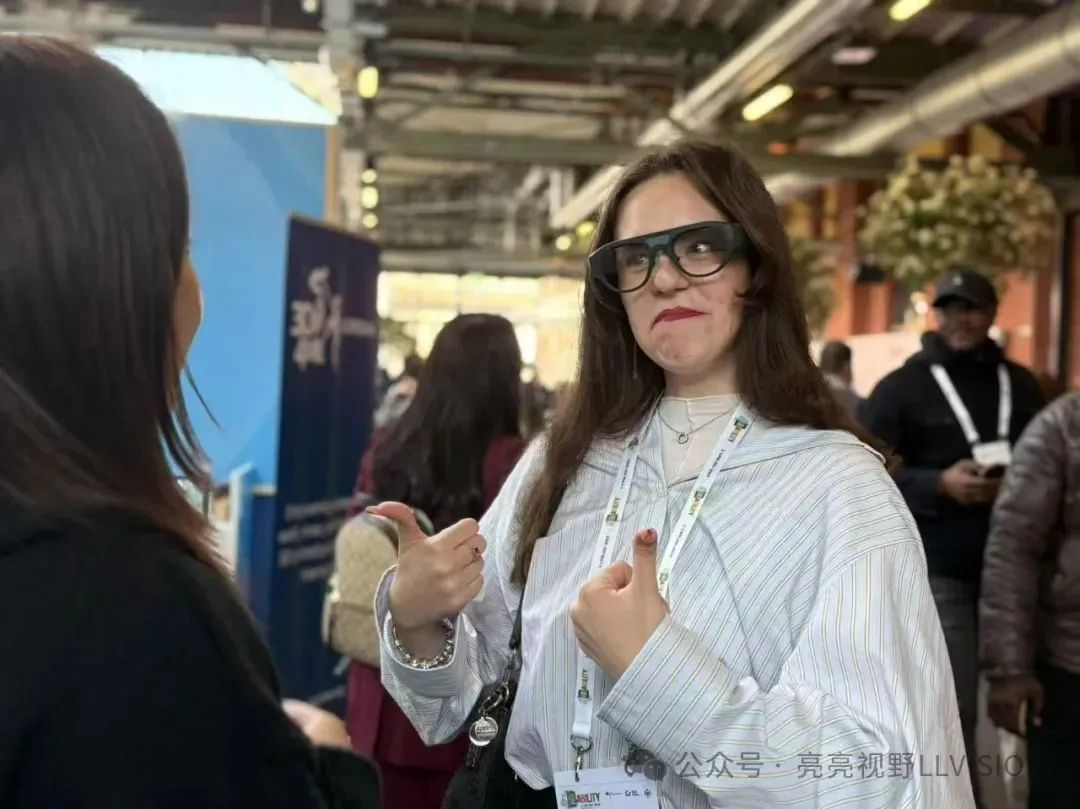 其中,亮亮視野展示了其“Leion Hey”助聽(tīng)與翻譯智能眼鏡,該產(chǎn)品可實(shí)時(shí)翻譯多種語(yǔ)音,并轉(zhuǎn)換成文字顯示在透明鏡片上,可為多個(gè)國(guó)家聽(tīng)障人士提供無(wú)障礙溝通解決方案。