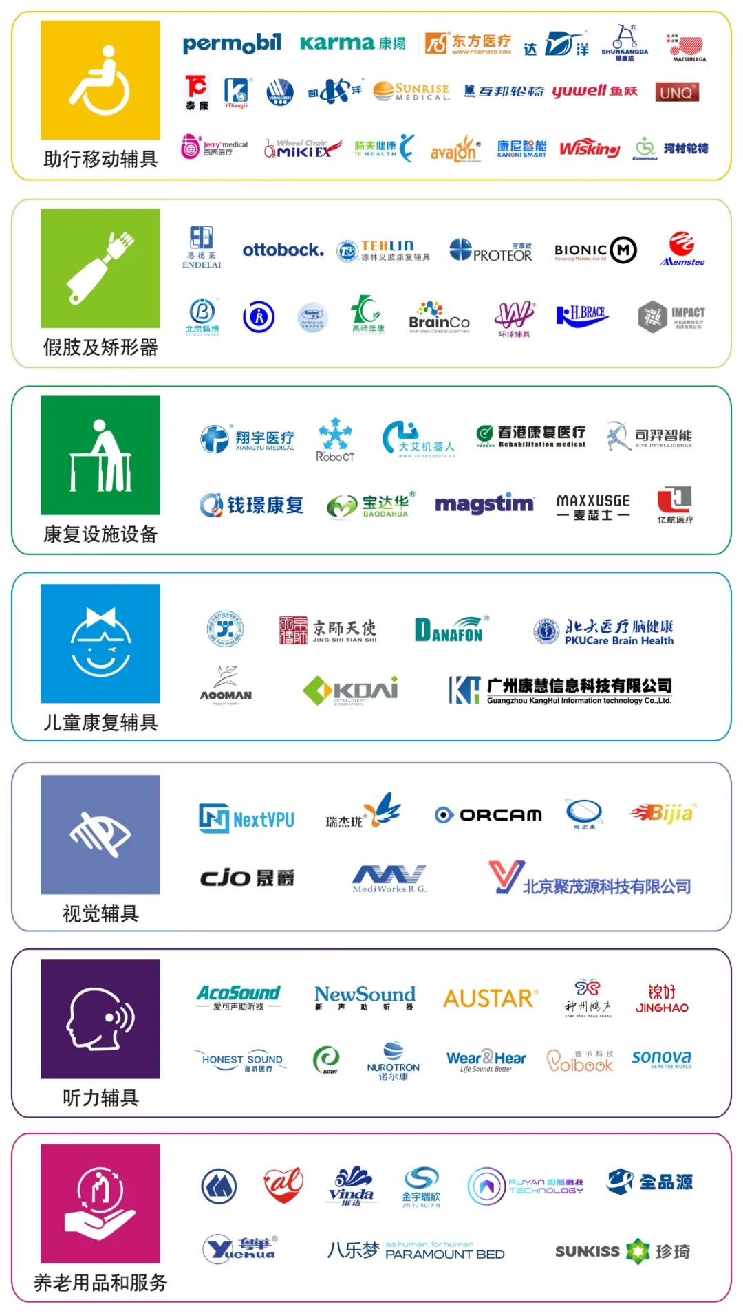 奧托博克、恩德萊、德林、寶泰歐、健行仿生、中站康豪、精博現(xiàn)代、北京輔具技術(shù)中心、科生、BrainCo、環(huán)球精博等假肢及矯形器廠商;