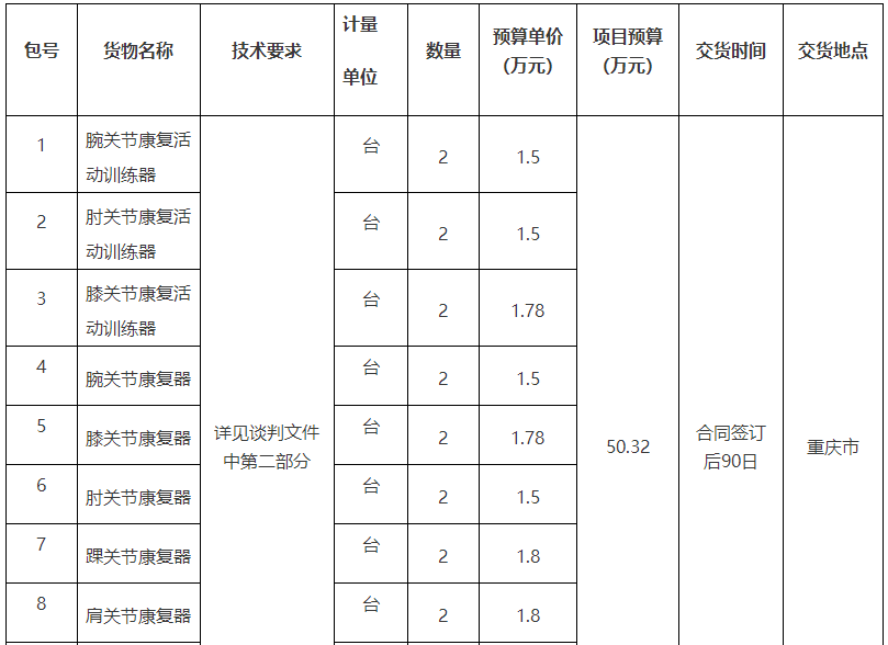 項(xiàng)目名稱:重慶市某單位康復(fù)訓(xùn)練器一批招標(biāo)公告(2022-JL13(03)-W10327)
