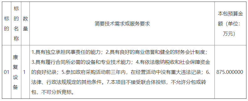 項(xiàng)目名稱:山東菏澤鄆城縣人民醫(yī)院康復(fù)設(shè)備采購(gòu)項(xiàng)目公開招標(biāo)公告