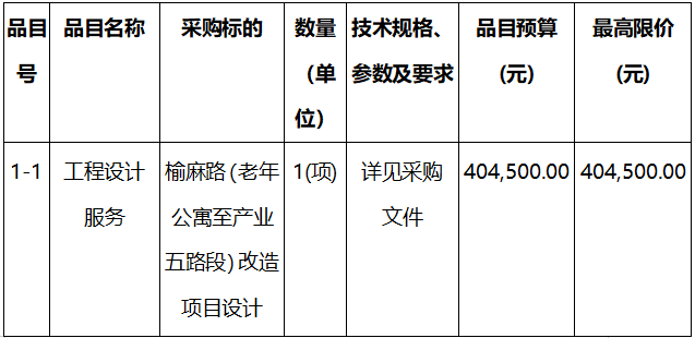 榆林市榆陽產(chǎn)業(yè)園區(qū)管理委員會榆麻路(老年公寓至產(chǎn)業(yè)五路段)改造項目設(shè)計競爭性磋商公告