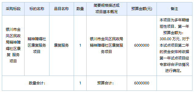 銀川市金鳳區(qū)民政局精神障礙社區(qū)康復(fù)服務(wù)項目招標公告
