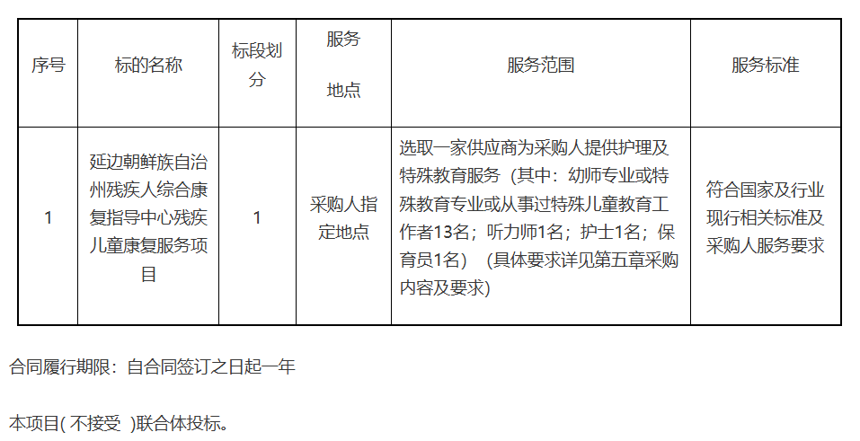延邊朝鮮族自治州殘疾人綜合康復(fù)指導(dǎo)中心殘疾兒童康復(fù)服務(wù)項(xiàng)目競爭性磋商公告