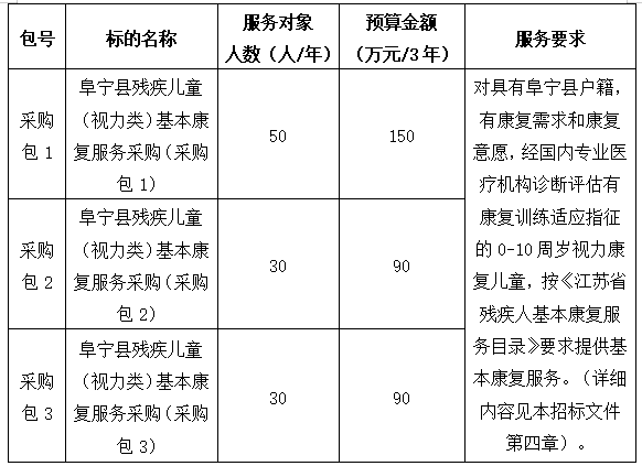 阜寧縣殘疾兒童(視力類)基本康復(fù)服務(wù)采購(gòu)采購(gòu)公告