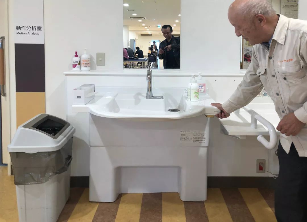 最往里的一個(gè)洗手池更具備升降功能: