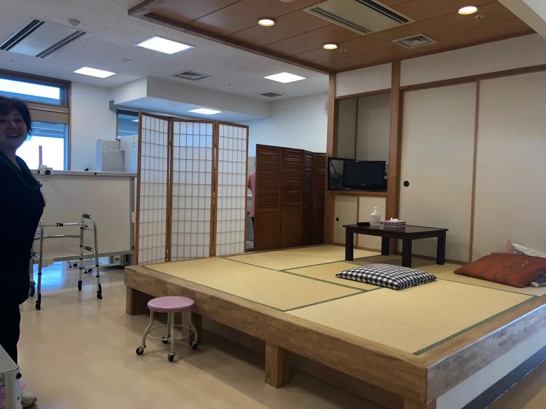 首先引起關(guān)注的是一個(gè)模擬的日本和室。這是按典型的日本傳統(tǒng)客廳尺寸模擬出來(lái),醫(yī)護(hù)人員會(huì)輔助患者在未來(lái)的身體狀態(tài)下,如何能在家里自理: