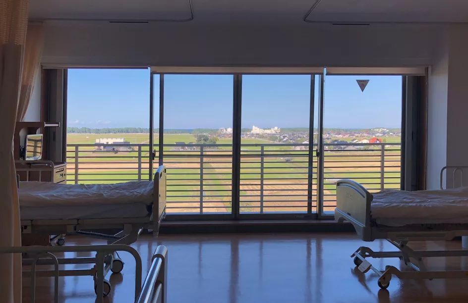 病房里的落地玻璃,將陽(yáng)光及景觀最大化。天氣好的時(shí)候還可以步出小陽(yáng)臺(tái)吹吹風(fēng)。外面是一大片農(nóng)田,遠(yuǎn)處還可以看到大海: