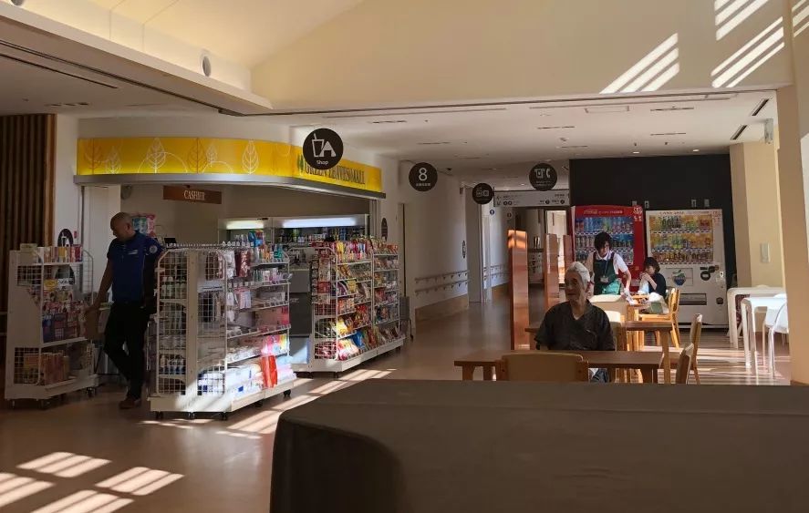 休閑區(qū)配置了量血壓機(jī)、雜志及各種自動(dòng)售賣機(jī)。二樓公共區(qū)也設(shè)有理療空間,景觀也更開(kāi)闊了: