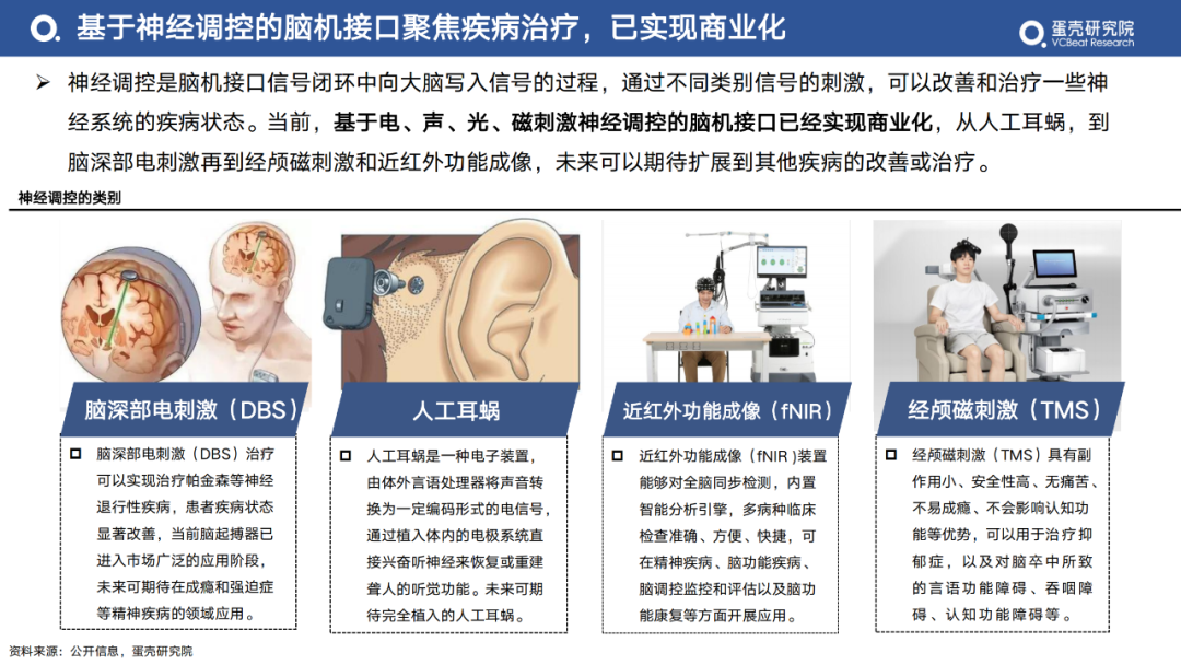 2.2 基于神經(jīng)調(diào)控的腦機(jī)接口聚焦疾病治療,已實(shí)現(xiàn)商業(yè)化