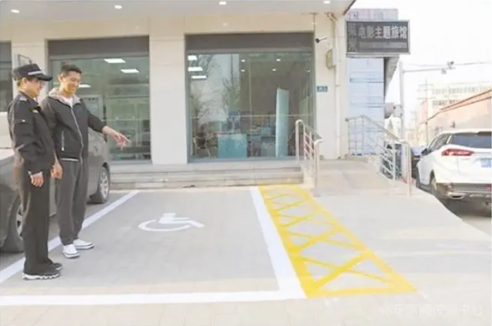 在中國(guó)銀行三豐路支行門口,醒目的無障礙停車位成為這里一道新的風(fēng)景,車位上有“殘疾人輪椅”圖案,邊上是一排黃色斜線條,方便殘障人士停車,“今天開車來銀行辦理貸款,看到這里有了無障礙停車位,非常顯眼也很好找。”李小峰剛停好車,就欣慰地說道。
