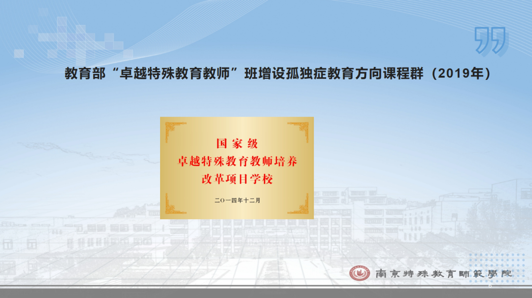 如何切實(shí)解決孤獨(dú)癥兒童教育之困,南京特殊教育師范學(xué)院邁出重要一步。李拉教授從專業(yè)籌建歷程、人才培養(yǎng)目標(biāo)、課程體系架構(gòu)、未來(lái)工作計(jì)劃等方面詳細(xì)介紹了本科新專業(yè)“孤獨(dú)癥兒童教育”。