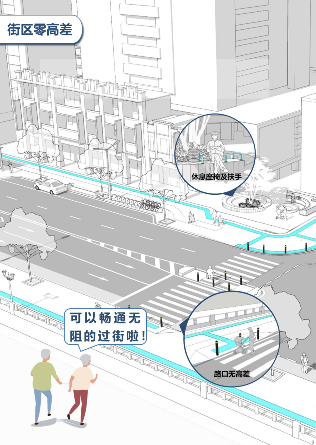 在居住區(qū)無障礙方面,《規(guī)劃》提出“高齡友善、出行便捷,兒童參與、健康安全”,做到15分鐘生活圈無障礙。結(jié)合老舊小區(qū)改造、城中村改造等工作,重點對老舊小區(qū)的出入口、道路、綠地、活動場地、游步道、小區(qū)公共設(shè)施等進行改造,2025年前完成全市80%老舊小區(qū)無障礙設(shè)施改造。