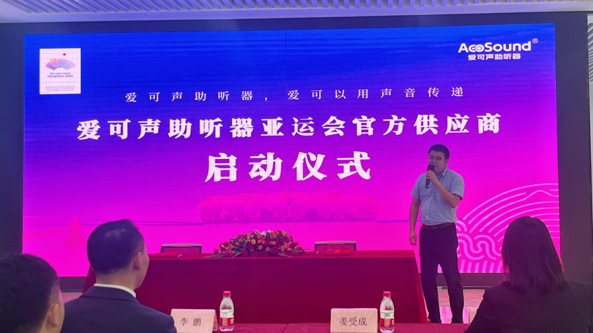 愛(ài)可聲助聽(tīng)器董事長(zhǎng)李鵬李總上臺(tái)致辭,表示愛(ài)可聲助聽(tīng)器有幸成為本次體育賽事-杭州亞運(yùn)會(huì)的官方供應(yīng)商,這是對(duì)我們品牌多年來(lái)持續(xù)努力的認(rèn)可與激勵(lì)。我們深感責(zé)任重大,因此愛(ài)可聲將以最優(yōu)質(zhì)的助聽(tīng)產(chǎn)品和服務(wù),助力本次亞運(yùn)會(huì)的順利舉辦。并且向參與杭州亞運(yùn)會(huì)籌備和組織工作的各級(jí)領(lǐng)導(dǎo)、組委會(huì)和志愿者表示衷心的感謝!