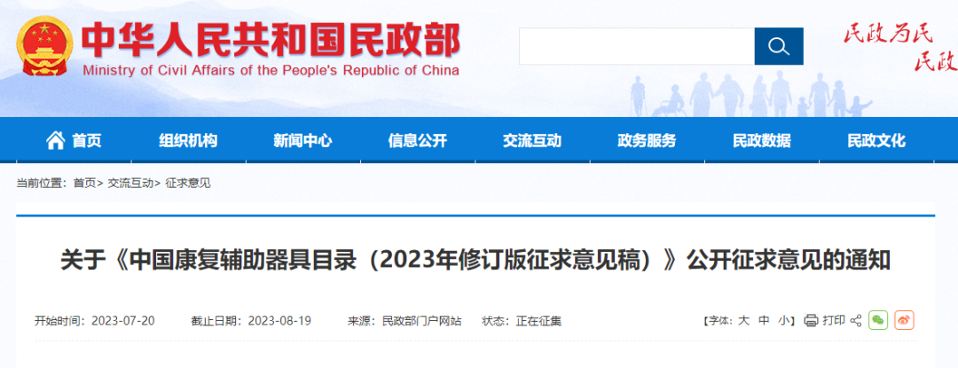 關(guān)于《中國康復(fù)輔助器具目錄(2023年修訂版征求意見稿)》公開征求意見的通知