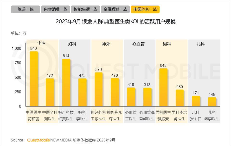 4、除了對醫(yī)療服務(wù)應(yīng)用的使用,銀發(fā)人群也會選擇通過內(nèi)容平臺的KOL來獲取廣泛的??漆t(yī)療保健內(nèi)容。