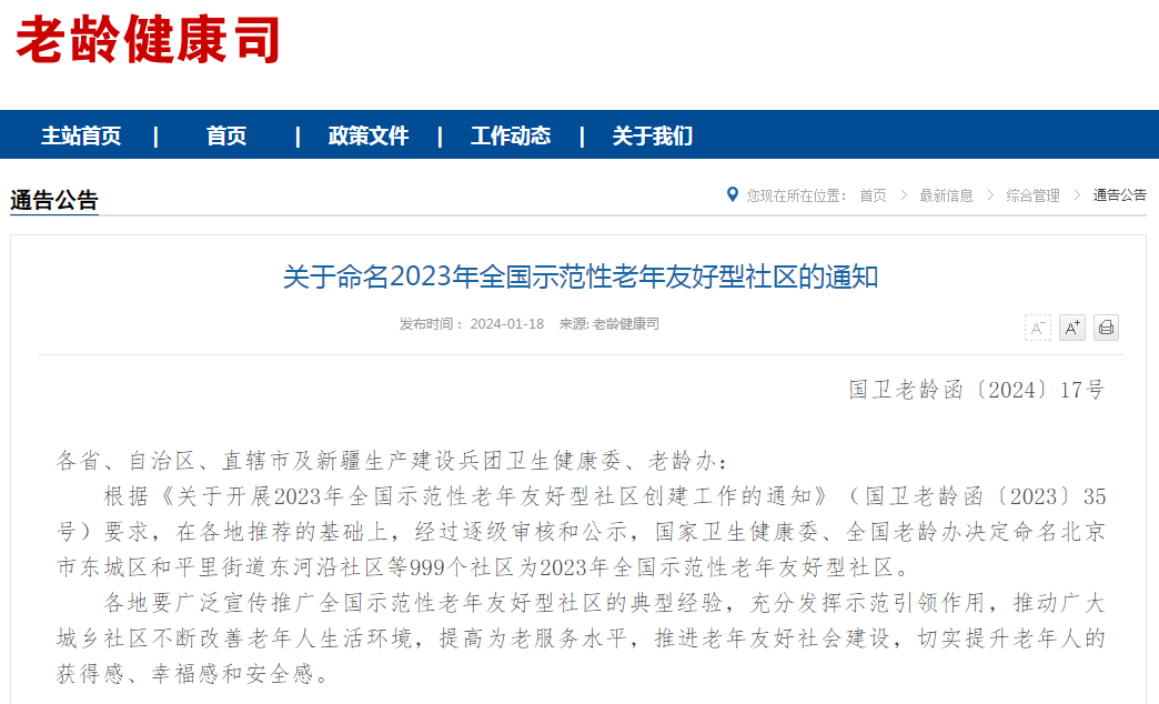 2023年全國(guó)示范性老年友好型社區(qū)名單公布