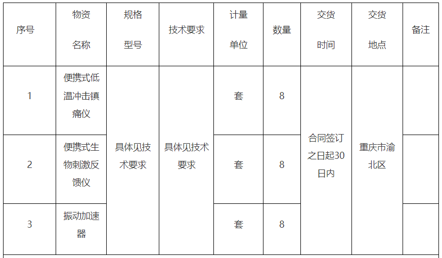 采購需求:采購中醫(yī)康復(fù)科醫(yī)療設(shè)備采購一批,詳細(xì)內(nèi)容詳見采購文件第二章《采購需求》