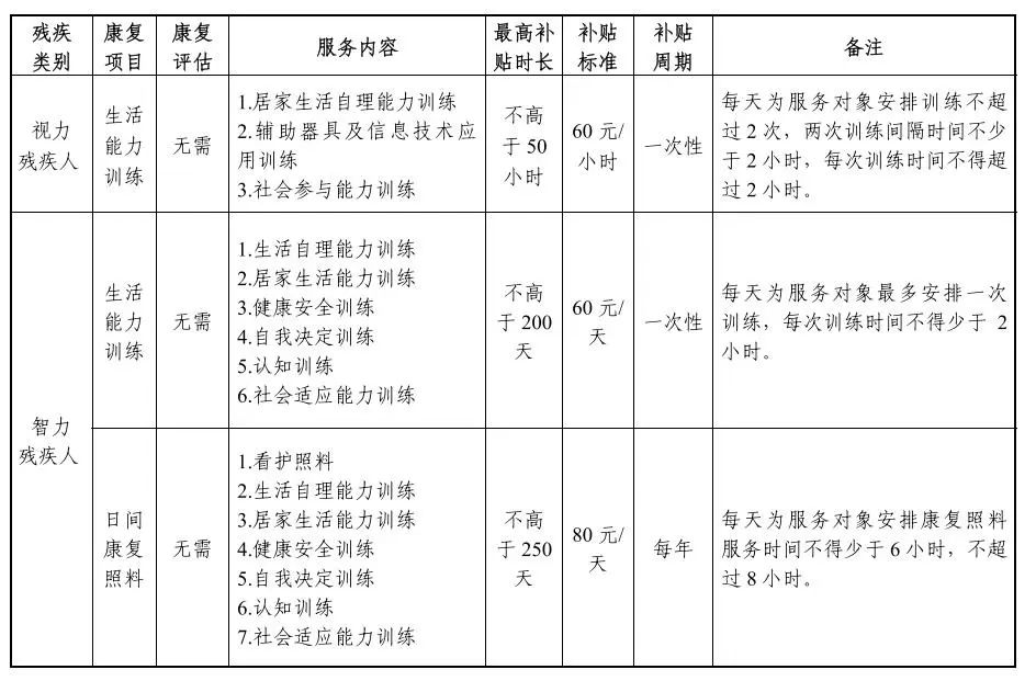 2、康復(fù)資助項(xiàng)目和標(biāo)準(zhǔn)一覽