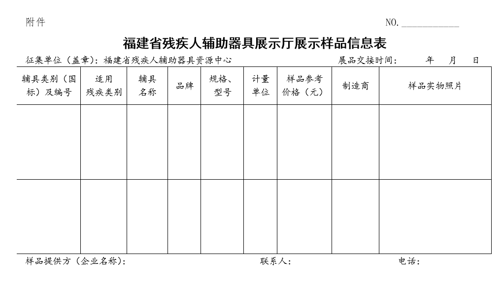 (一)請(qǐng)意向企業(yè)整理展品清單,詳細(xì)填寫《福建省殘疾人輔助器具展示廳展示樣品登記表》(附件)。