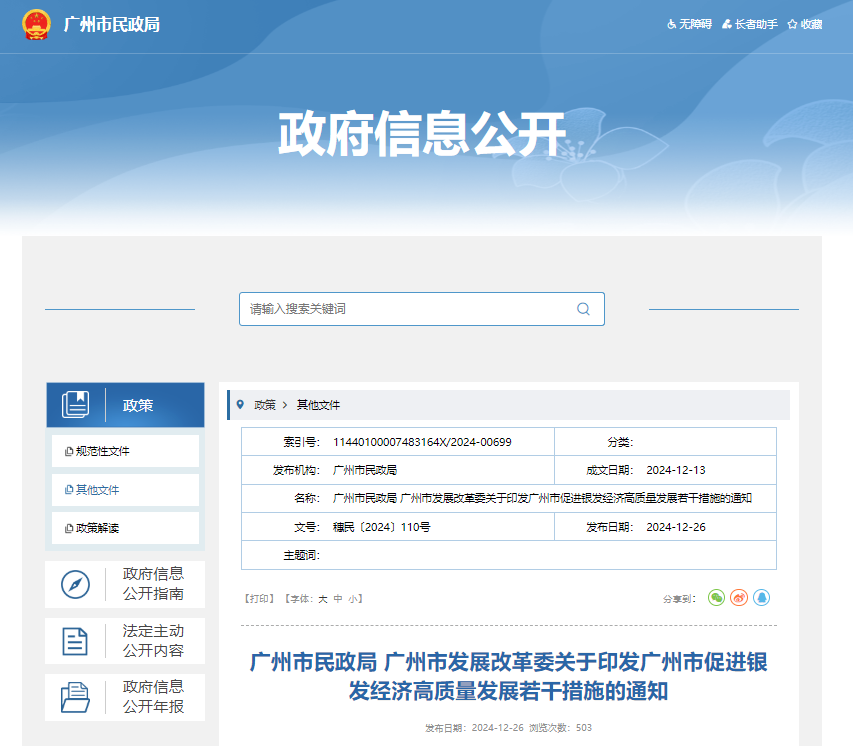 近日,經(jīng)廣州市人民政府同意,《廣州市民政局 廣州市發(fā)展改革委關(guān)于印發(fā)廣州市促進(jìn)銀發(fā)經(jīng)濟(jì)高質(zhì)量發(fā)展若干措施的通知》(穗民〔2024〕110號(hào),下稱《措施》)正式出臺(tái)?!洞胧穼?duì)標(biāo)對(duì)表《國(guó)務(wù)院辦公廳關(guān)于發(fā)展銀發(fā)經(jīng)濟(jì)增進(jìn)老年人福祉的意見(jiàn)》26項(xiàng)舉措和7大潛力產(chǎn)業(yè),結(jié)合我市重點(diǎn)產(chǎn)業(yè)審視、業(yè)務(wù)圖譜初步成果和老年人需求深化調(diào)研成果,聚焦老年人高頻需求和我市優(yōu)勢(shì)產(chǎn)業(yè),從民生事業(yè)、重點(diǎn)賽道和支撐保障三個(gè)方面提出10條操作性強(qiáng)的措施。