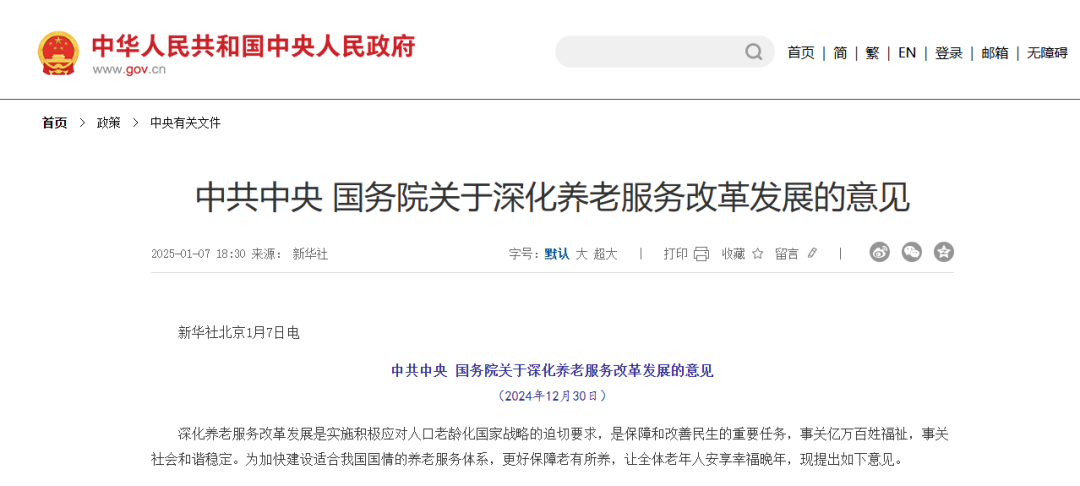 中共中央、國務(wù)院發(fā)布關(guān)于深化養(yǎng)老服務(wù)改革發(fā)展的意見