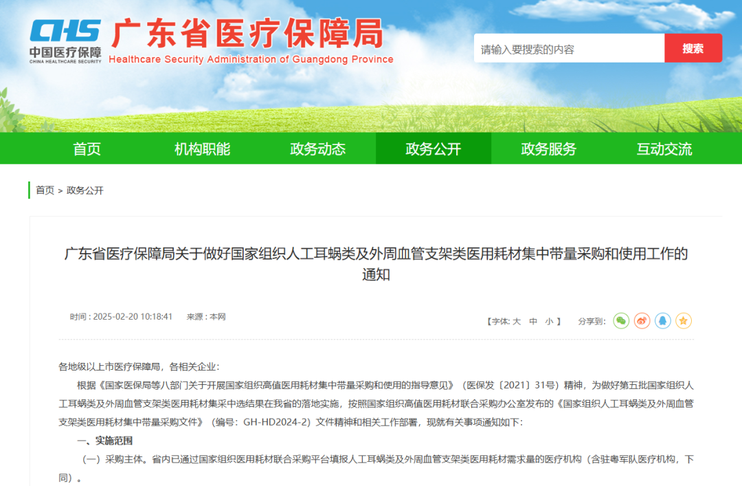 2月20日,廣東省醫(yī)療保障局發(fā)布了《關(guān)于做好國家組織人工耳蝸類及外周血管支架類醫(yī)用耗材集中帶量采購和使用工作的通知》,人工耳蝸、外周血管支架兩類高值醫(yī)用耗材國家集采中選結(jié)果將分階段在廣東全面執(zhí)行,人工耳蝸單套(含植入體、處理器)價格從平均20余萬元降至5萬元左右。