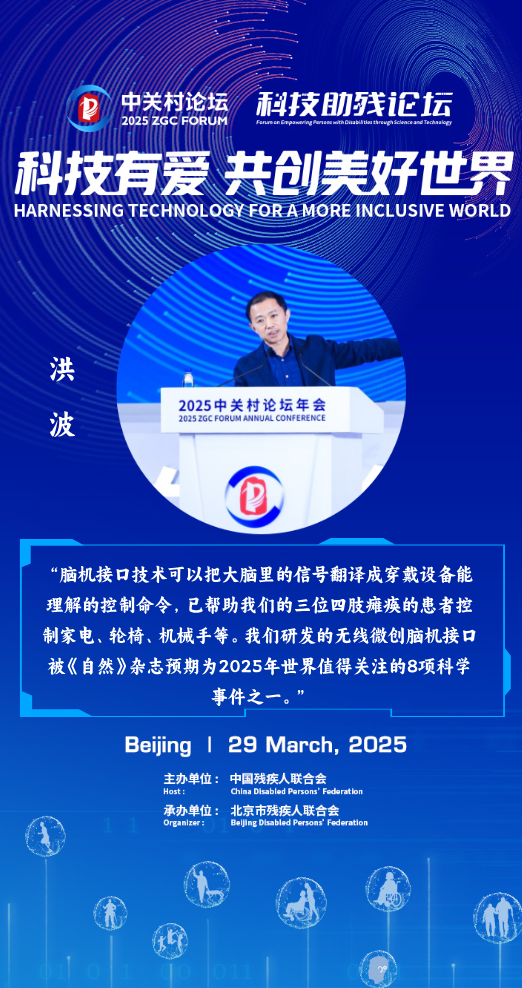 “腦機(jī)接口技術(shù)可以把大腦里的信號(hào)翻譯成穿戴設(shè)備能理解的控制命令,已幫助我們的三位四肢癱瘓的患者控制家電、輪椅、機(jī)械手等。我們研發(fā)的無線微創(chuàng)腦機(jī)接口被《自然》雜志預(yù)期為2025年世界值得關(guān)注的8項(xiàng)科學(xué)事件之一。”