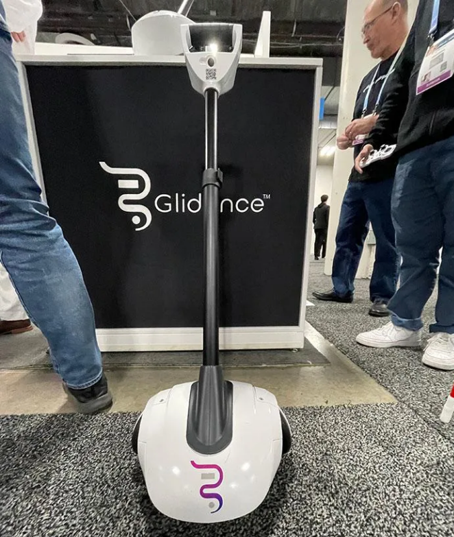 美國Glidance公司研發(fā)的Glide導盲機器人集成了用于導航和躲避障礙的尖端傳感器,其可通過手柄上的觸覺和音頻向用戶發(fā)送指示,從而幫助用戶規(guī)避障礙。