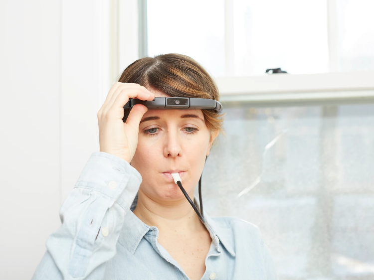有著“電子棒棒糖”之稱的口腔電子視覺輔助設(shè)備BrainPort Vision Pro則可以用一個布滿電極的口含傳感器幫助視障人群導盲。用戶只需要戴上頭戴設(shè)備,并將口含傳感器放置在口中,內(nèi)部搭載的攝像機便會自動捕捉周圍環(huán)境,并轉(zhuǎn)化為黑白灰三種不同色階的圖像,隨后轉(zhuǎn)化為電信號發(fā)送至口含傳感器中。通過三種圖像所反饋的不同強度的刺激,用戶便可將周圍信號翻譯為物體的形狀、位置等信息,從而指引用戶方向并進行避障指引。