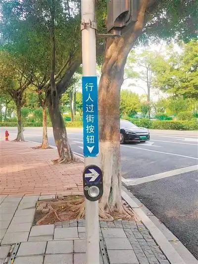 一些路口配置了行人過(guò)街按鈕。