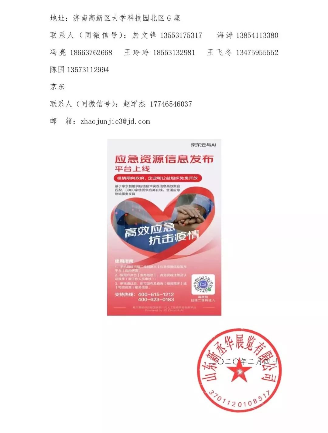近日,疫情肆虐,多地應(yīng)急物資紛紛告急。為幫助各級(jí)政府 部門、醫(yī)療機(jī)構(gòu)實(shí)現(xiàn)物資供求信息的精準(zhǔn)對(duì)接,緩解疫情壓力,由京東團(tuán)隊(duì)研發(fā)“應(yīng)急資源信息發(fā)布平臺(tái)”及“智能情感客服”,山東新丞華展覽有限公司負(fù)責(zé)面向全國(guó)醫(yī)療衛(wèi)生機(jī)構(gòu)推廣,強(qiáng)強(qiáng)聯(lián)合,攜手打贏疫情阻擊戰(zhàn)。