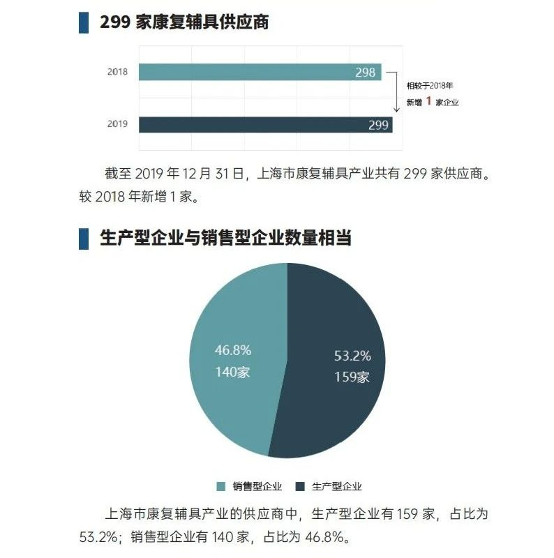 通過(guò)線下調(diào)研和線上企業(yè)信息數(shù)據(jù)庫(kù)的檢索,將上海市康復(fù)器具協(xié)會(huì)成員單位、在上海市注冊(cè)且主營(yíng)業(yè)務(wù)為康復(fù)輔具的企業(yè)、在上海市注冊(cè)且持有輔具專利等345家企業(yè)信息納入本次統(tǒng)計(jì)范圍,其中包括299家康復(fù)輔具供應(yīng)商和46家康復(fù)輔具服務(wù)企業(yè)。
